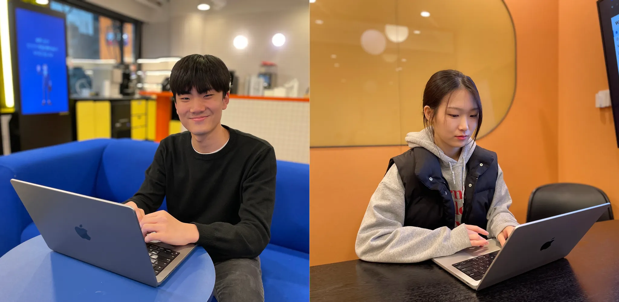 왼쪽부터 (Bruce, AI 인턴), 오른쪽은 (Irine, 전략 및 운영 인턴)